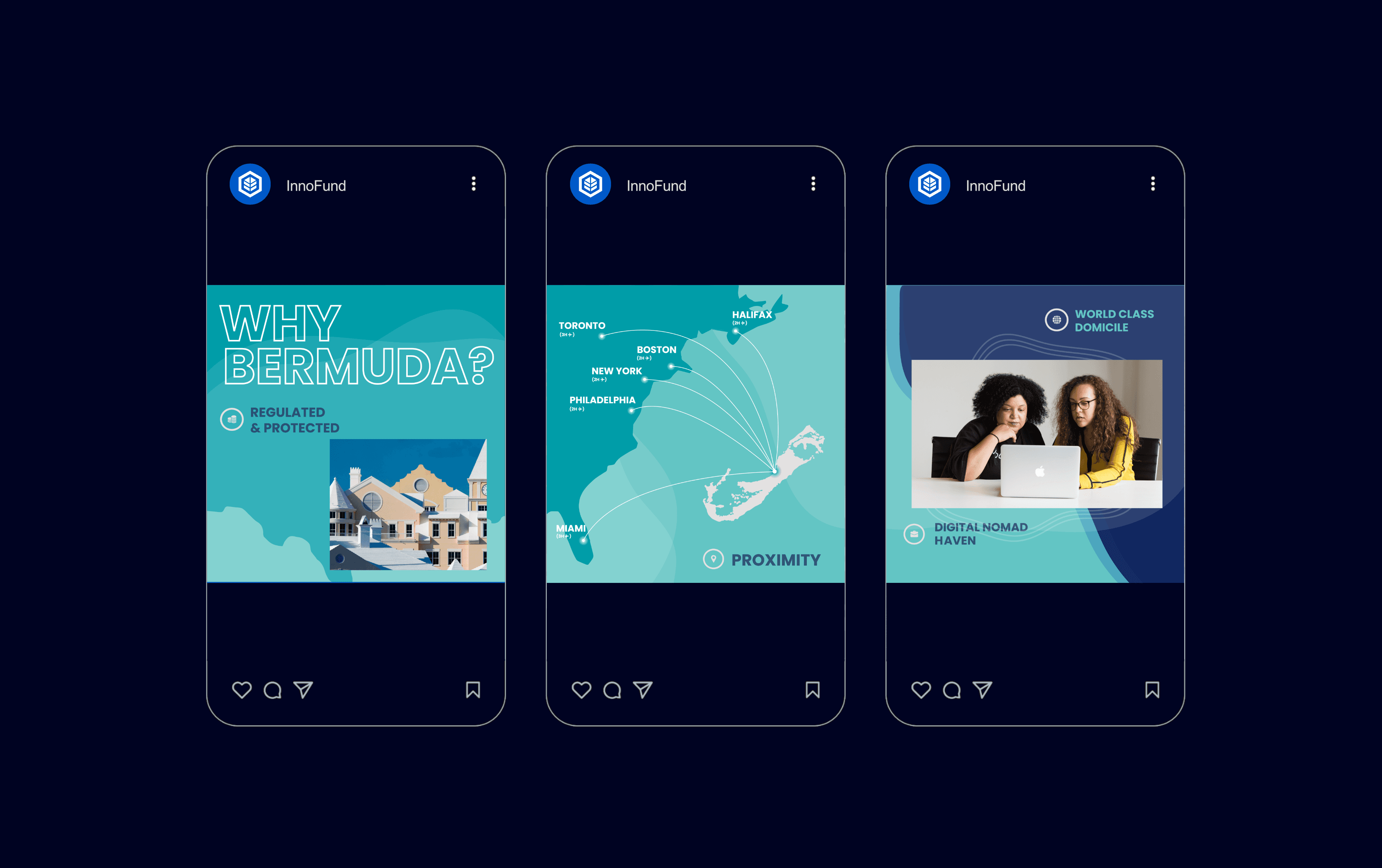 InnoFund is a Bermuda-based incubator hub with a global reach, designed to connect startups with capital providers and foster innovation in the region. As Graphic Designer & Brand Manager at FanDemand, Inc., I led the creative direction for InnoFund, overseeing all design output across print and digital channels. The brand’s visual language balances vibrancy with professionalism. Wave-inspired motifs and a bold color palette reflect Bermuda’s natural beauty while positioning the island as a modern tech destination, appealing to startups seeking funding and mentorship, investors looking for vetted opportunities, and global tech stakeholders interested in Bermuda’s strategic advantages.