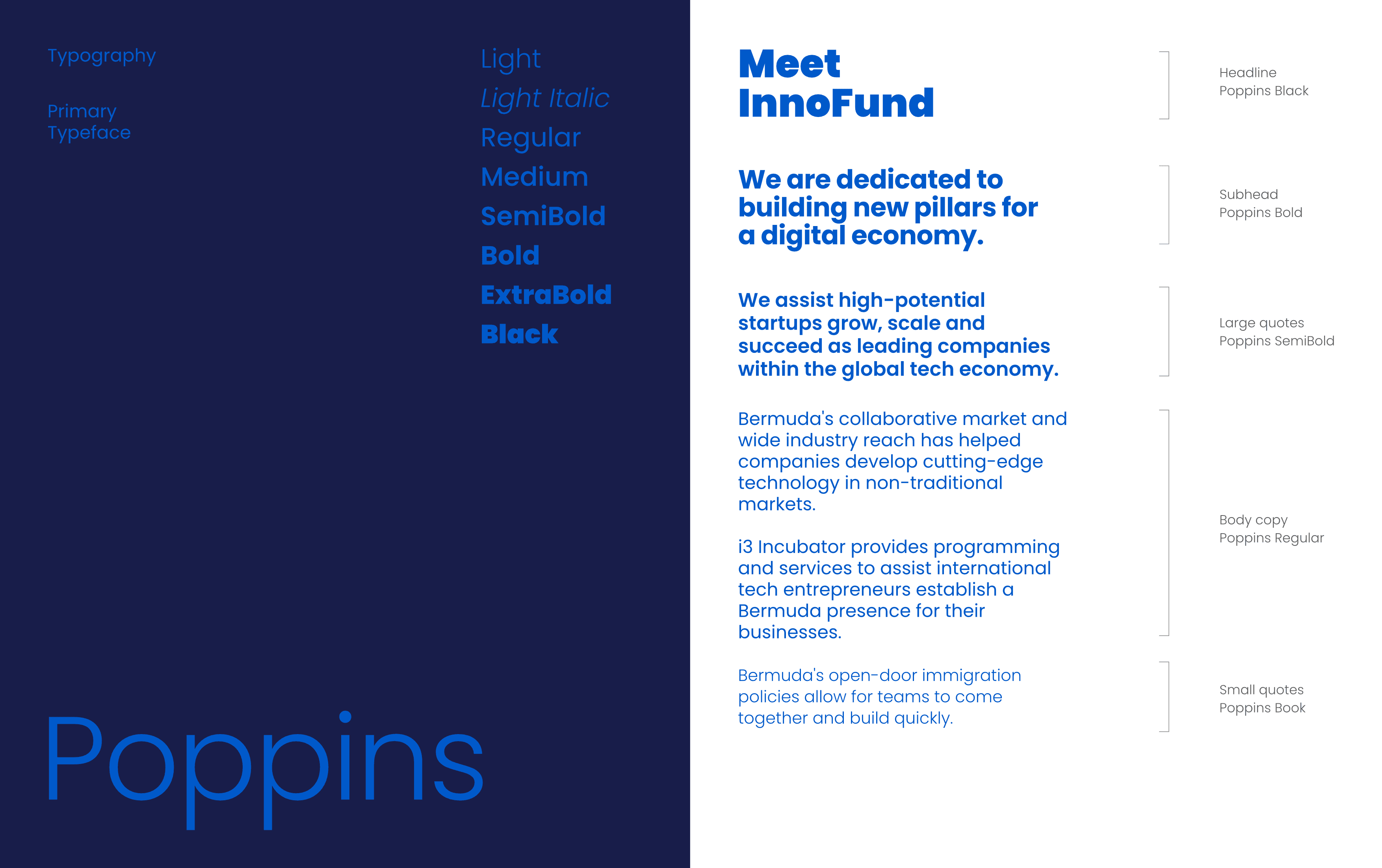 The project culminated in a fully developed brand identity and visual system, providing a strong foundation for InnoFund’s communications. This included comprehensive brand guidelines and a cohesive visual identity framework, as well as a suite of print and digital collateral, presentation templates, and social media assets. I also designed one-pagers and other program-specific materials for InnoFund’s annual summer cohort, ensuring the brand was applied consistently and effectively across all touchpoints.